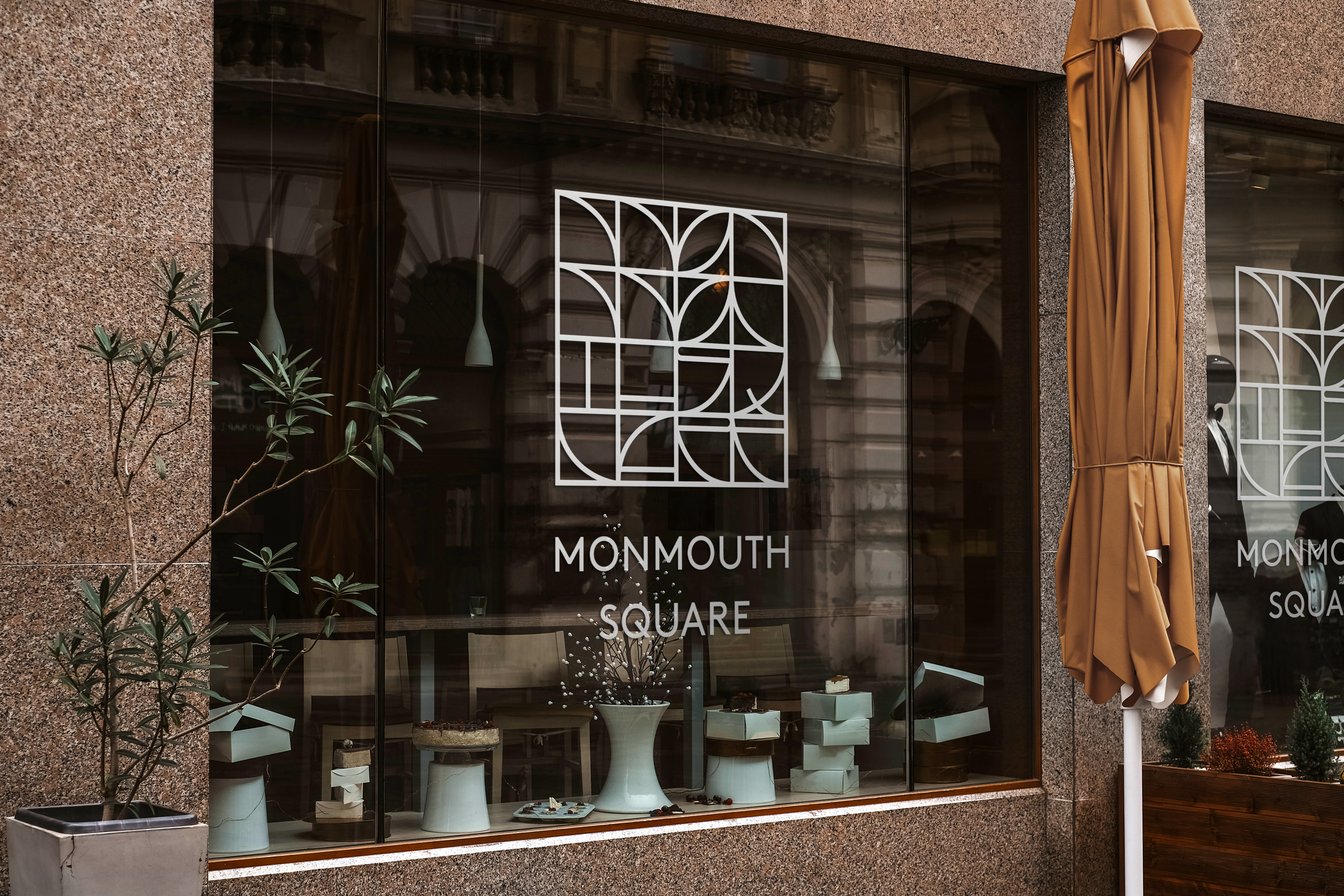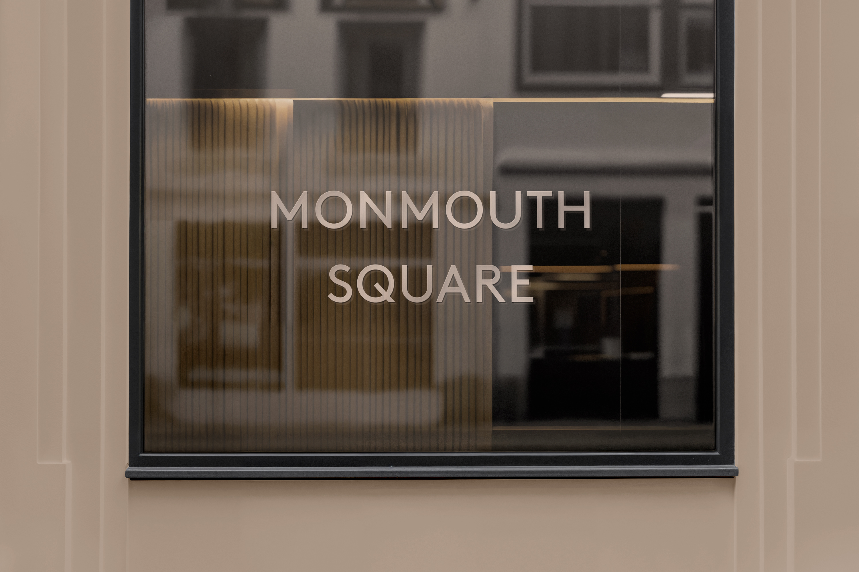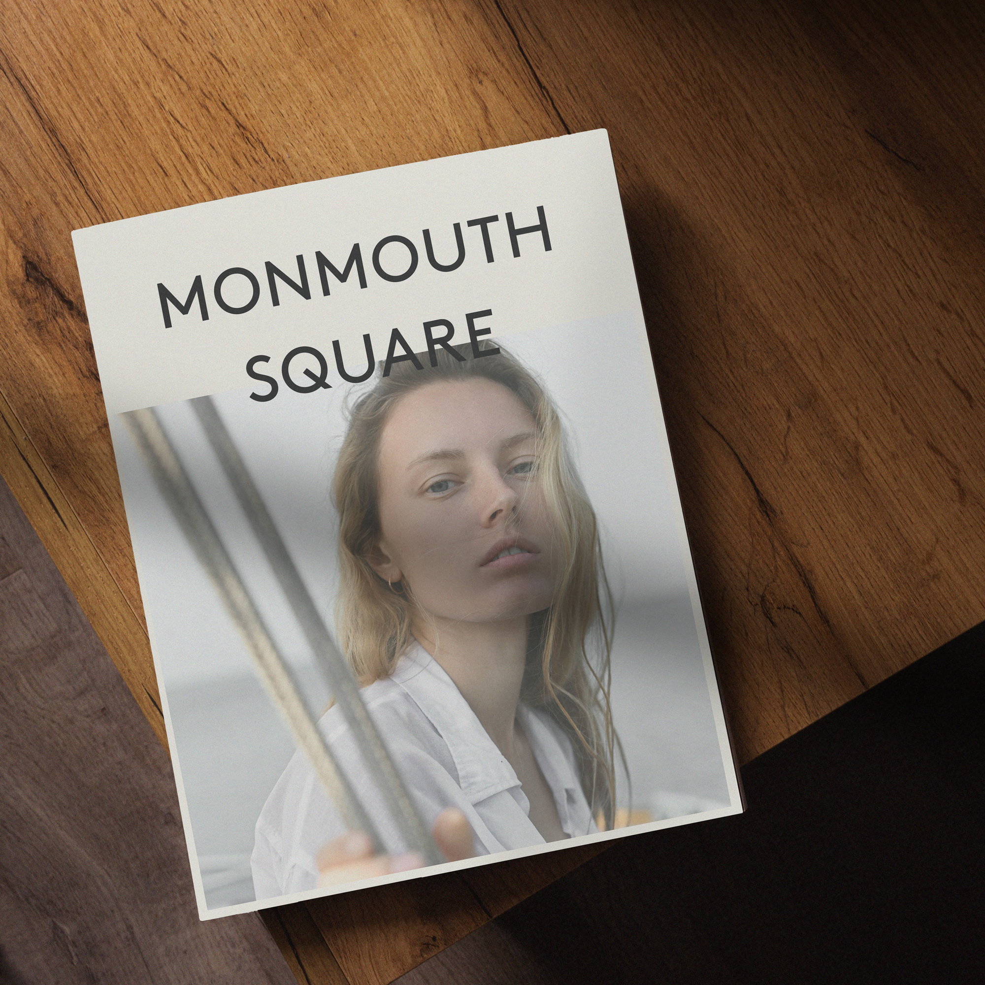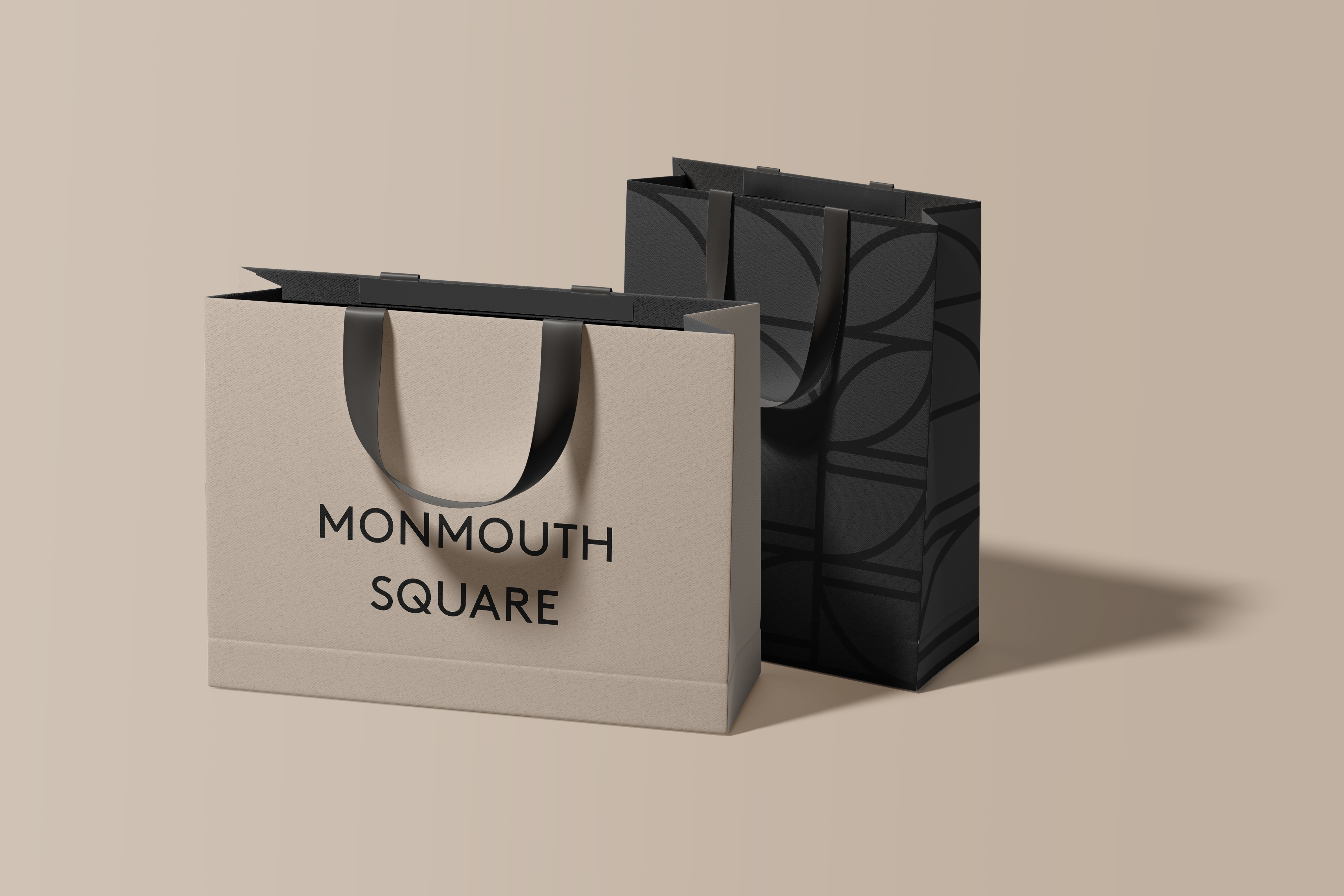 The centerpiece of the brand identity is a geometric symbol that serves as both a logo and a repeating brand pattern. This symbol is ingeniously constructed from the letters of "MONMOUTH SQUARE," arranged in strict geometric forms. Beyond its typographic roots, the design draws inspiration from old-style garden ornaments and wrought-iron fences, evoking a sense of timeless elegance. Its aesthetic pays homage to the Vienna Secession movement of the early 1900s, where arts and crafts flourished as a central part of society. Influenced by the design legacy of the Wiener Werkstätte, the symbol embodies the sophistication and creativity of that era, reinterpreted for a modern context.